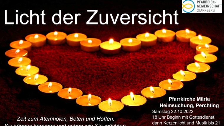Der Pfarrgemeinderat Perchting-Hadorf lädt unter dem Motto „Licht der Zuversicht“ zum Gottesdienst am Samstag, 22.10.2022 um 18:00 Uhr in die Pfarrkirche Mariä Heimsuchung in Perchting ein
