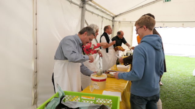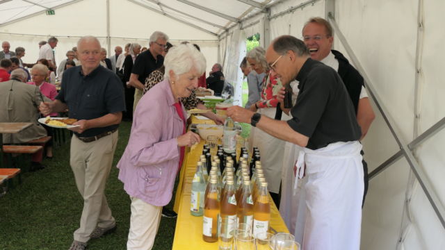 Für die Verpflegung im Festzelt war ausreichend gesorgt, bei Schnitzel und Kartoffelsalat konnten es sich alle geladenen Gäste richtig gut gehen lassen. Den Service für Speisen und Getränke übernahmen dabei die hauptamtlichen Mitarbeiterinnen und Mitarbeiter.