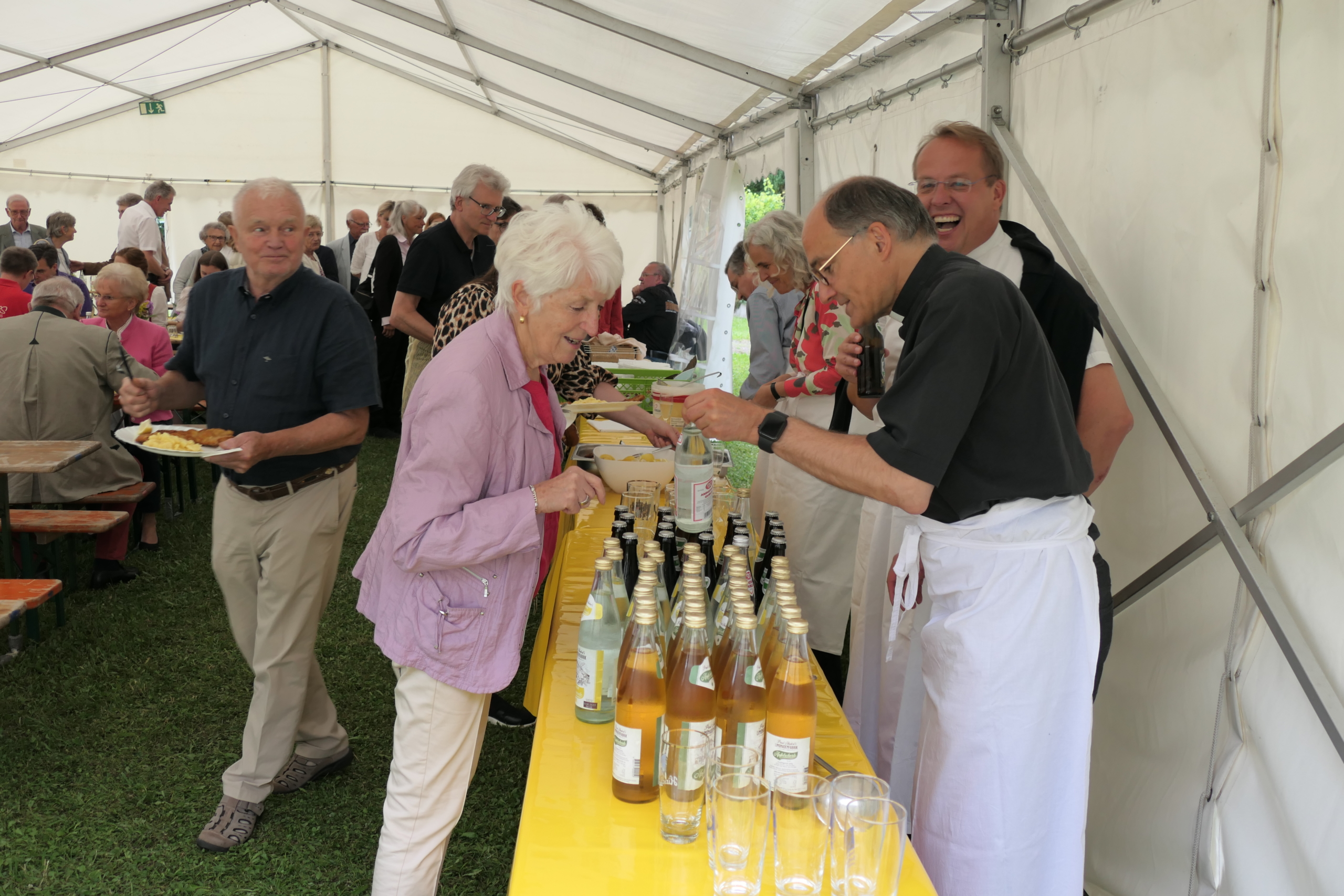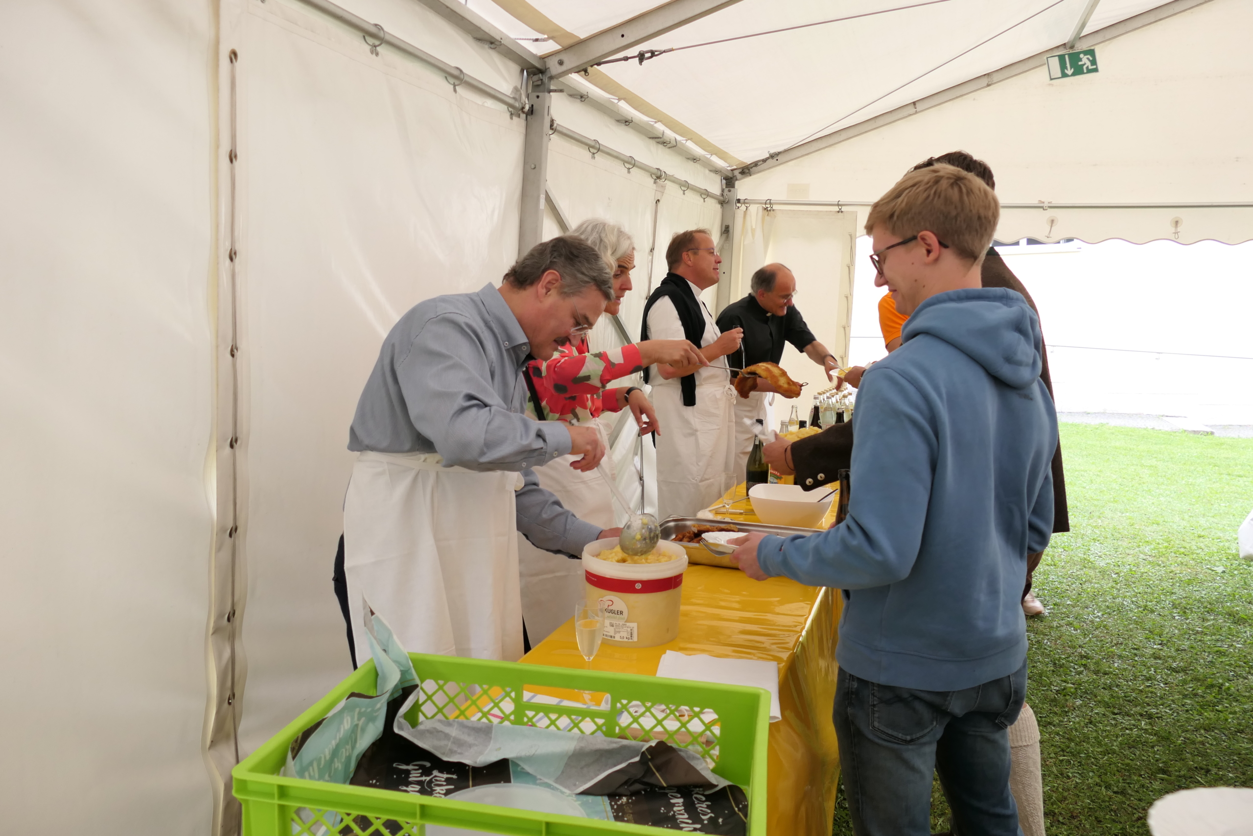 Für die Verpflegung im Festzelt war ausreichend gesorgt, bei Schnitzel und Kartoffelsalat konnten es sich alle geladenen Gäste richtig gut gehen lassen. Den Service für Speisen und Getränke übernahmen dabei die hauptamtlichen Mitarbeiterinnen und Mitarbeiter.