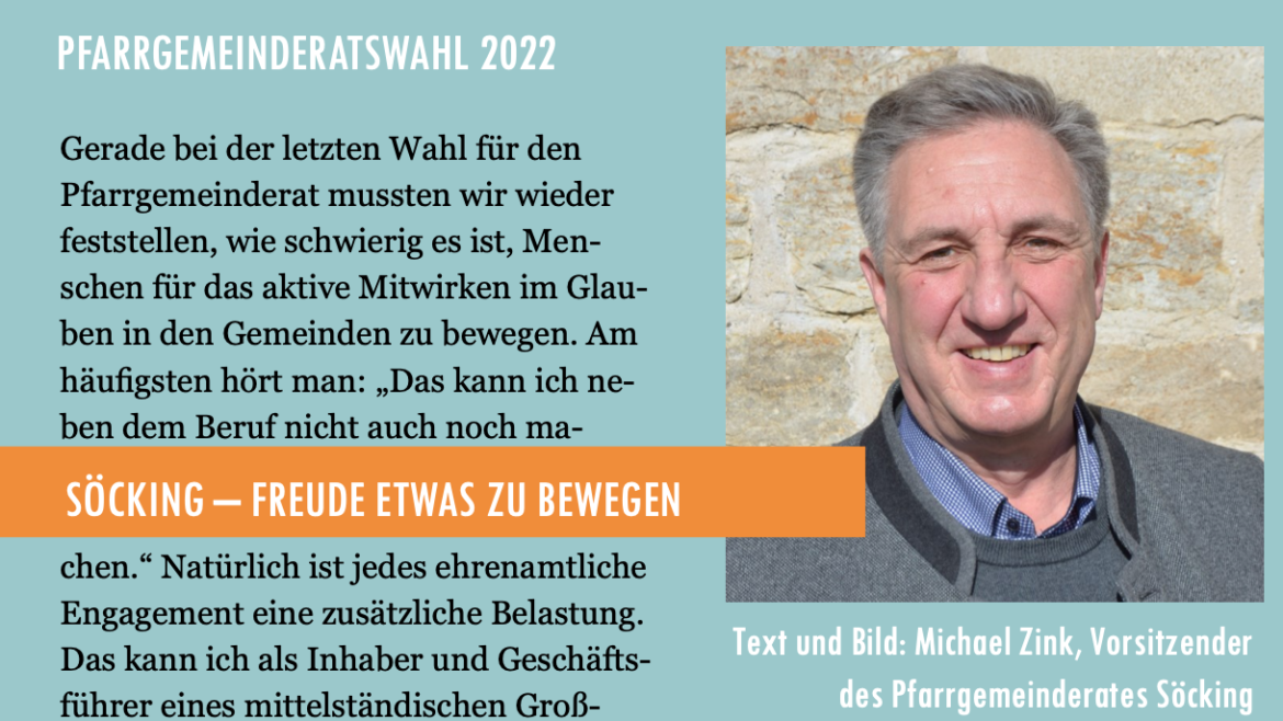 Dieser Beitrag vom PGR-Vorsitzenden des Pfarrgemeinderates Söcking, Michael Zink, ist auch im aktuellen Pfarrbrief „Spiritus 02/2022“ erschienen.