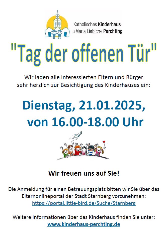 Wir laden alle interessierten Eltern und sowie Bürgerinnen und Bürger ein, das Katholische Kinderhaus Perchting an einem Tag der offenen Tür kennenzulernen.