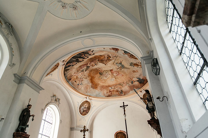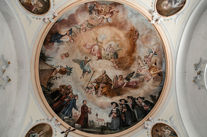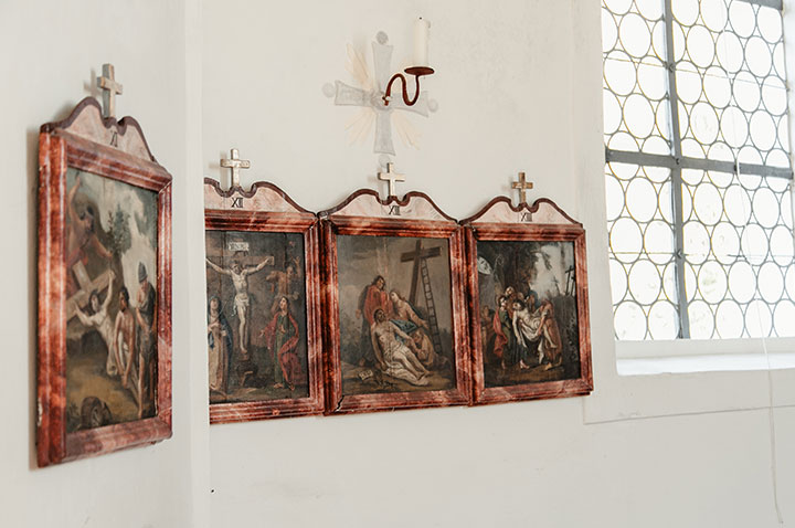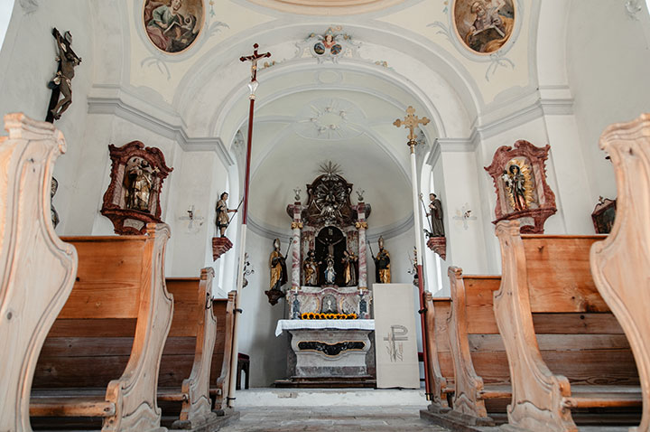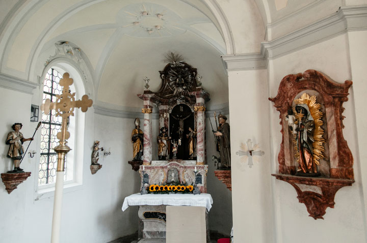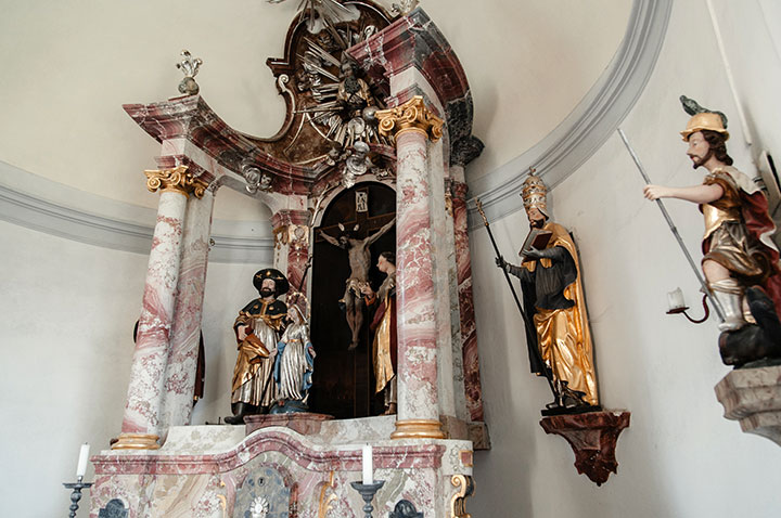 Bemerkenswert ist der Altar aus Stuckmarmor mit seinen frühbarocken Figuren.